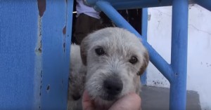 Kvinnen stryker hunden som har vært mishandlet i årevis. Reaksjonen hans smeltet hjertet mitt!