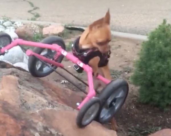 Den lille chihuahuaen ble født uten frambein og ble forlatt i en skitten kartong på en trafikkert vei. Ingen stoppet for å hjelpe til. Til slutt stoppen heldigvis noen og plukket opp valpen, men når personen så at hun ikke hadde noen frambein la han henne tilbake og gikk videre. Jene, en forbipasserende så hva som hendte og ble forferdet.