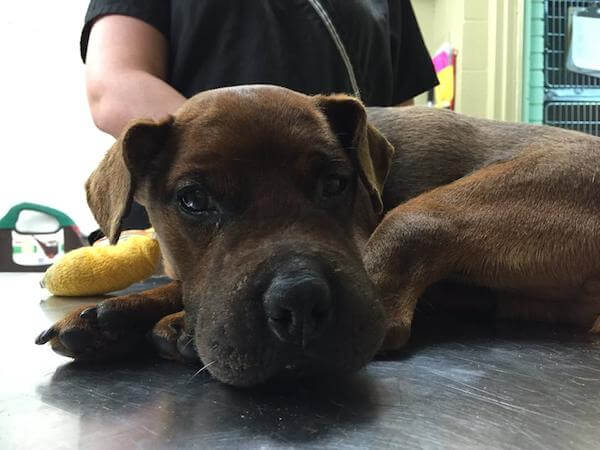 Mannen som fant ham ringte til Humane Society, som forklarte at hunden var i ekstrem nød.