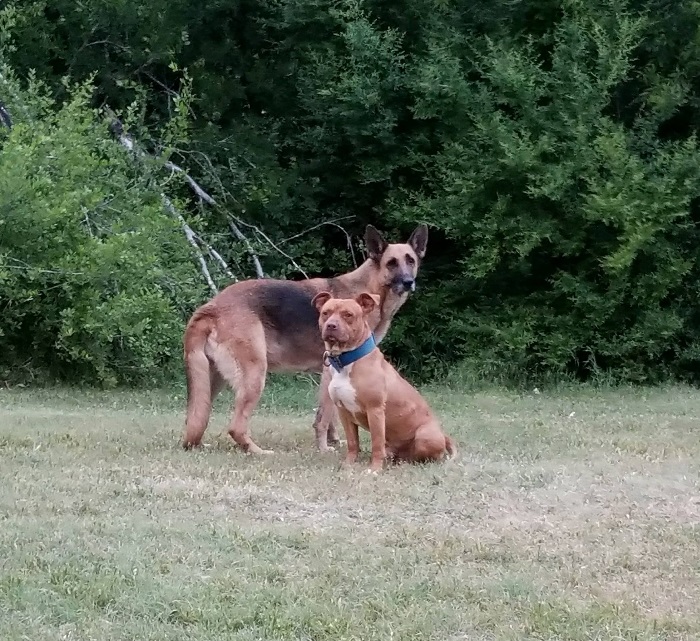 Selv om Judy nettopp hadde møtt pitbullen, bestemte hun seg for å ta de med seg. Hun døpte schæferen Iris og pitbullen Clover.