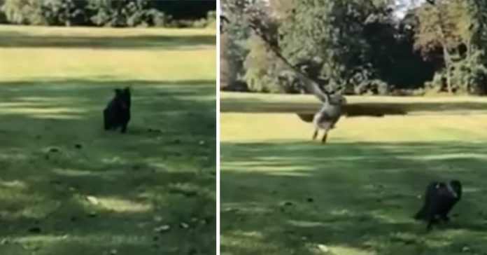 Det viste seg å være stor hauk – som stupte rett ned mot hunden!